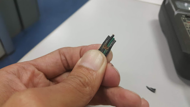 使用三用電表一段段查發現是線組短路,剪斷後撥開,發現裡面因摩擦久而破皮短路了