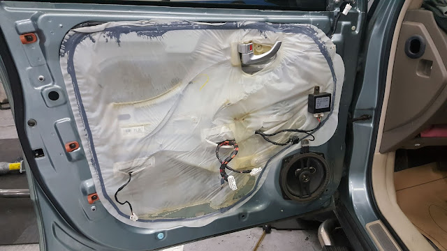 將燈組裝上,裁減接上後線有點短,原來是尾門上段玻璃門常常開開關關所以線才會磨到短路!