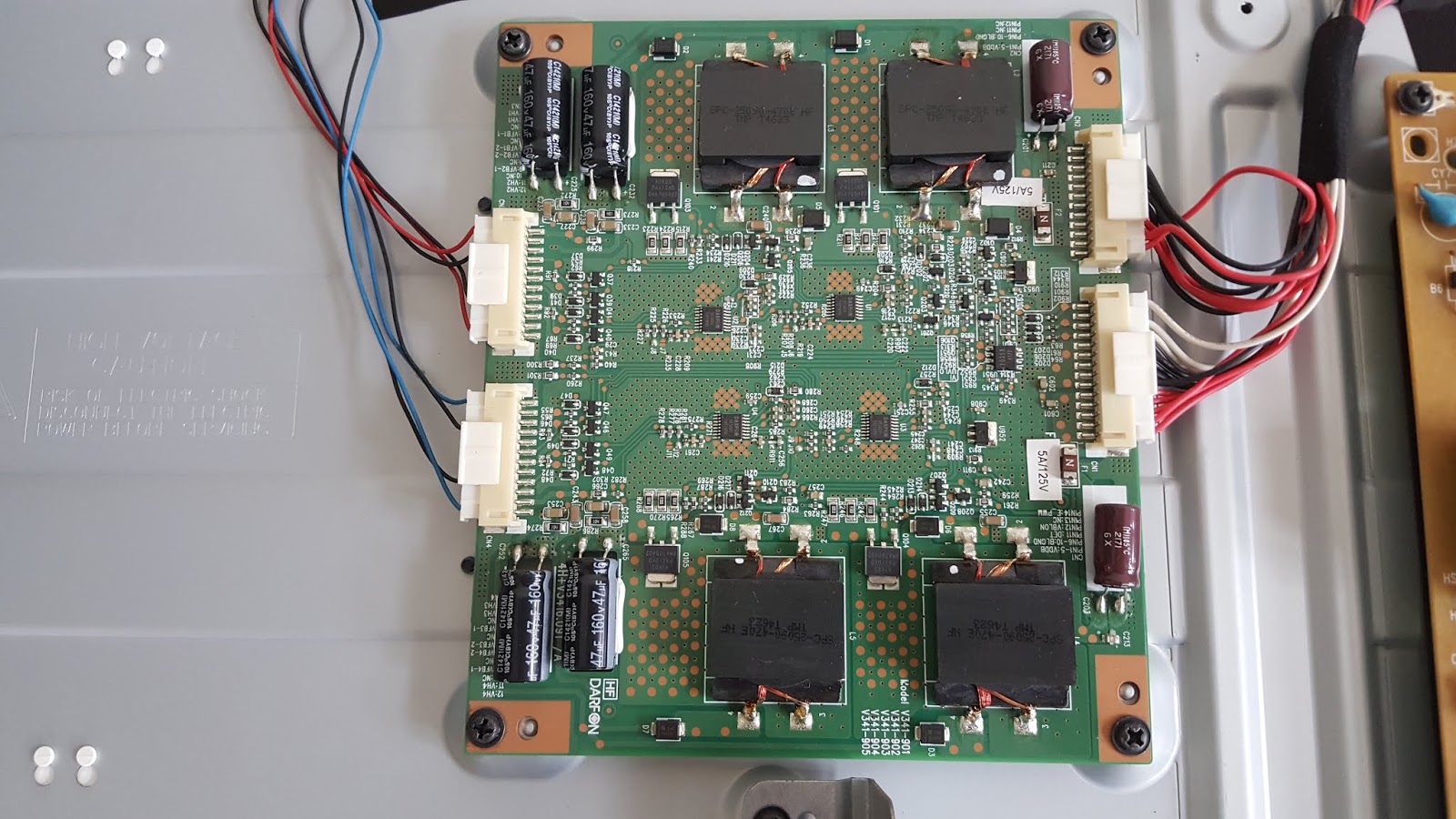觀察與判斷 : 電視剛開機時功能正常 (表示面板沒壞),使用一段時間約 1~3 小時後會出現閃黑,就是黑屏,然後又會正常,反覆閃黑,黑屏時可以聽到聲音正常,所以我判斷視訊板應該沒壞,熱機後才會閃黑,感覺有9 成把握就是高壓背光板故障吧~