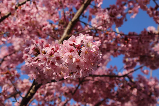 正值春天沿途處處櫻花盛開,進入雪霧鬧後還要車程十幾公里,最後到伊萬農場前有一小片空地可停車