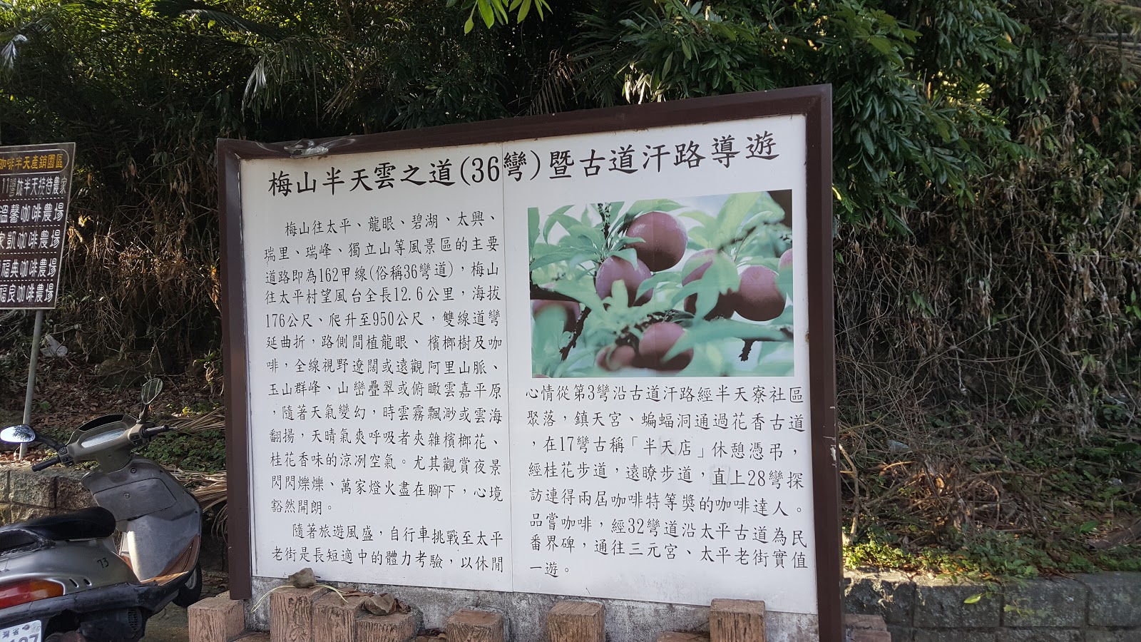 因為昨天FB打卡有人提到梅山36彎,於是今早跟鹽滿姊提我想去這看看,再去追他們,沒想到她說坡不陡大概40分鐘就可騎上去,如果是我可能30分鐘就可以,鼓勵我過去看看,於是在這裡與他們分開了,我一個人單飛~