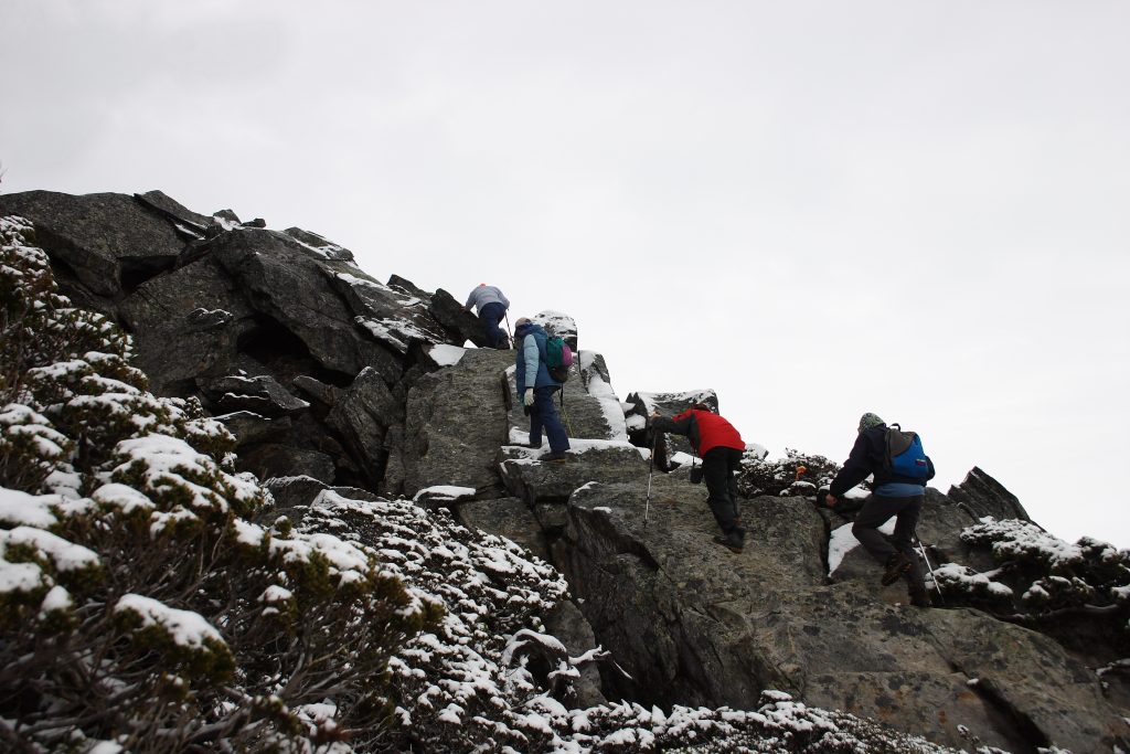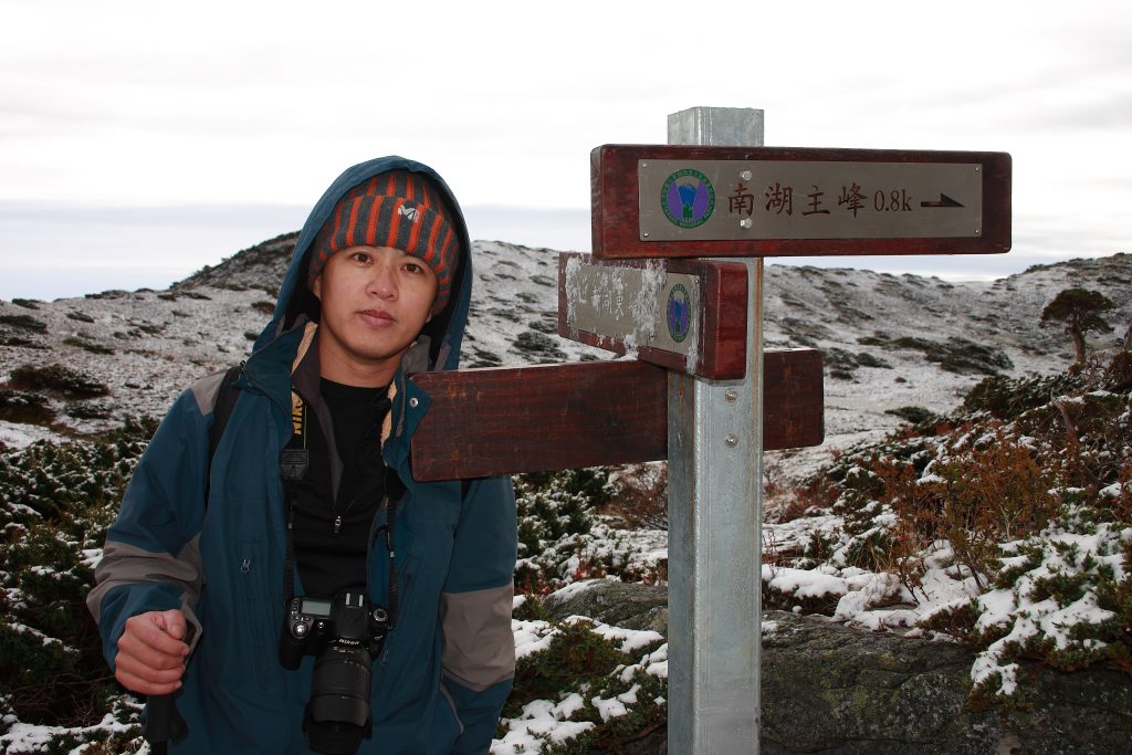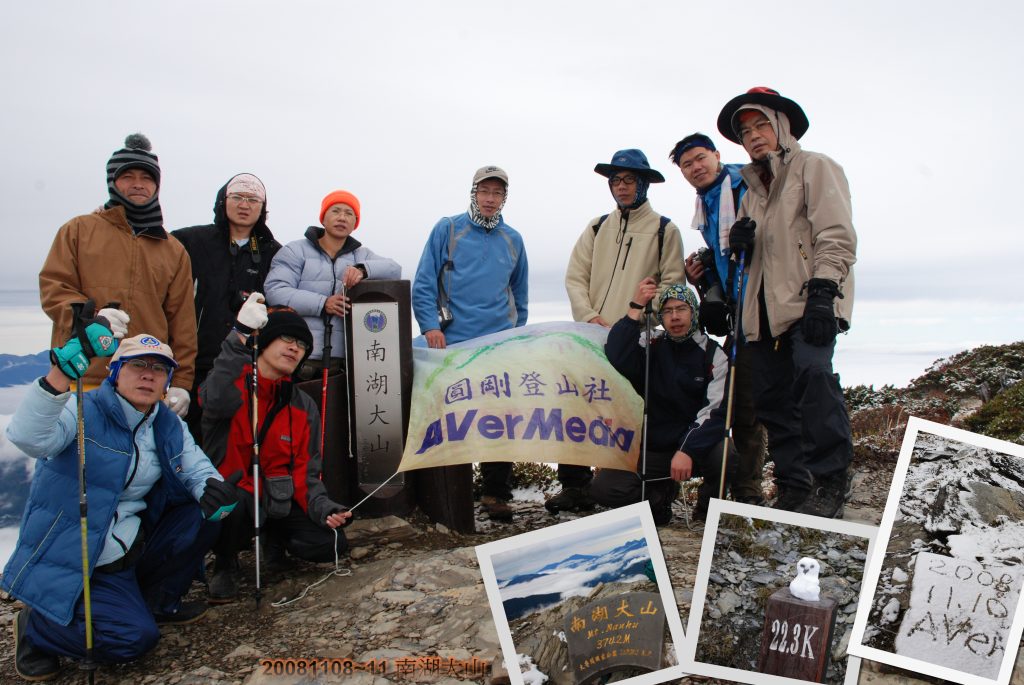 與公司社團同事組團來攀登南湖大山,新雲稜山莊碰上下雨天同事堅持繼續行程,大夥苦瓜的硬著頭皮上,冷冽的雨天登上南湖山屋,卻也意外的包場山屋,而且碰上難得一見的初雪~