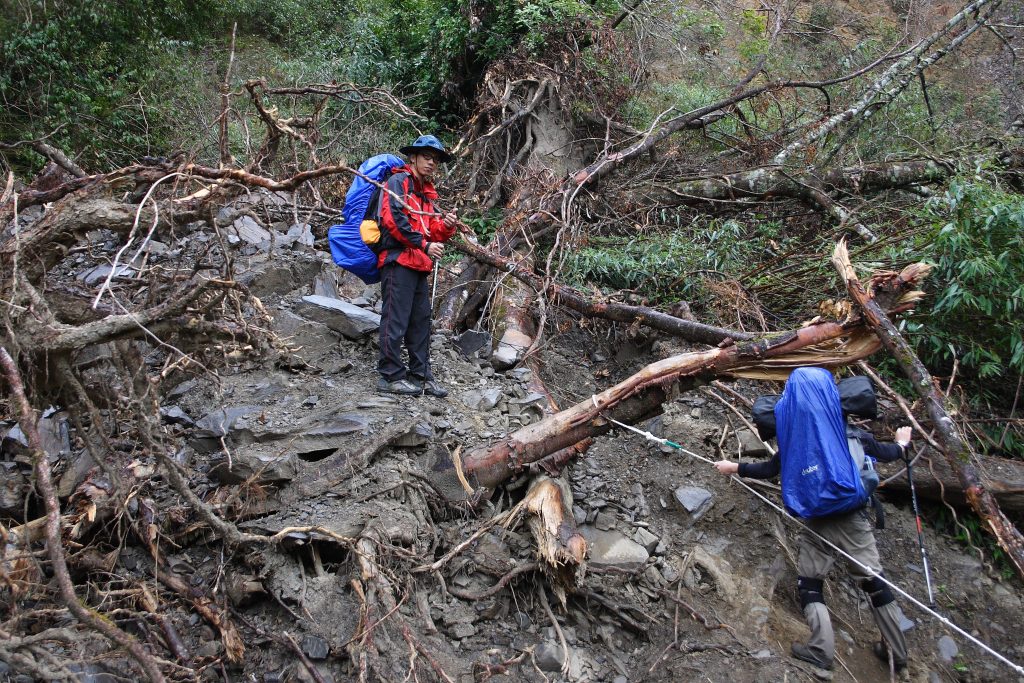 11:16 經過一處崩塌處,約有四米的落差要拉繩子上去