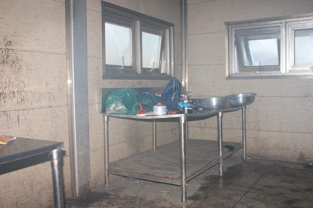 9:54 回到山屋,煮點熱水,因為太冷及鞋子濕了,我的腳拇指都凍傷了,真後悔昨天應該穿上雨褲的ㄚ,至少讓鞋子不要進水才對