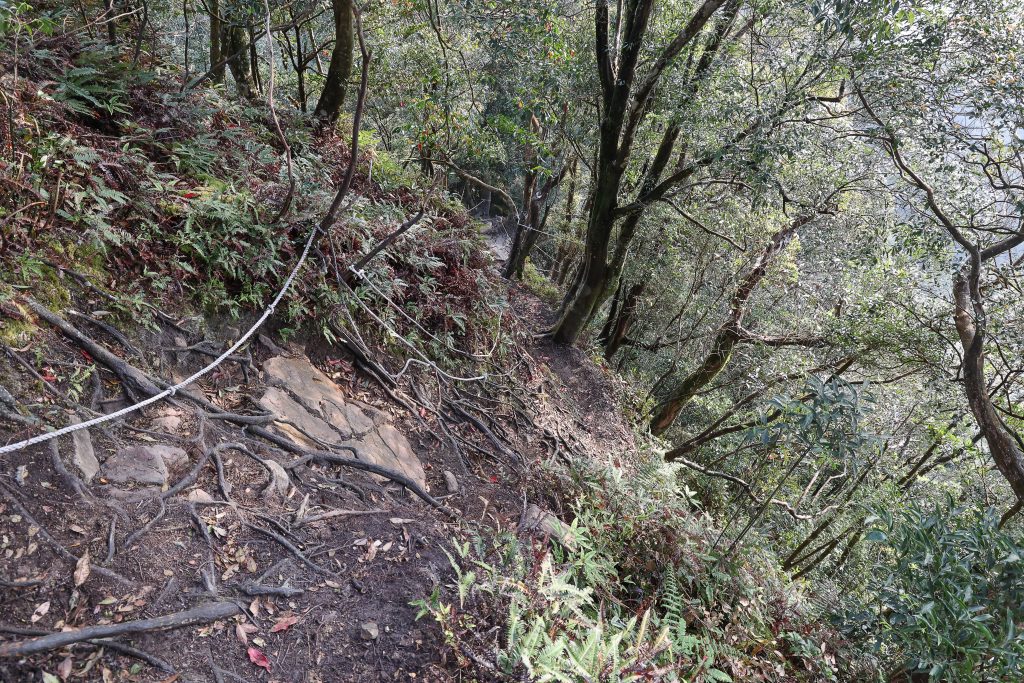 這次穿著鞋底磨平的鞋子,然後沒有登山杖,在一處落差可能是樹根濕滑突然腳一滑差點讓我GG,登山還是要做好萬全準備步步小心,尤其是潮濕的天候更要注意,難怪我同事都只挑好天氣出行,降低風險。