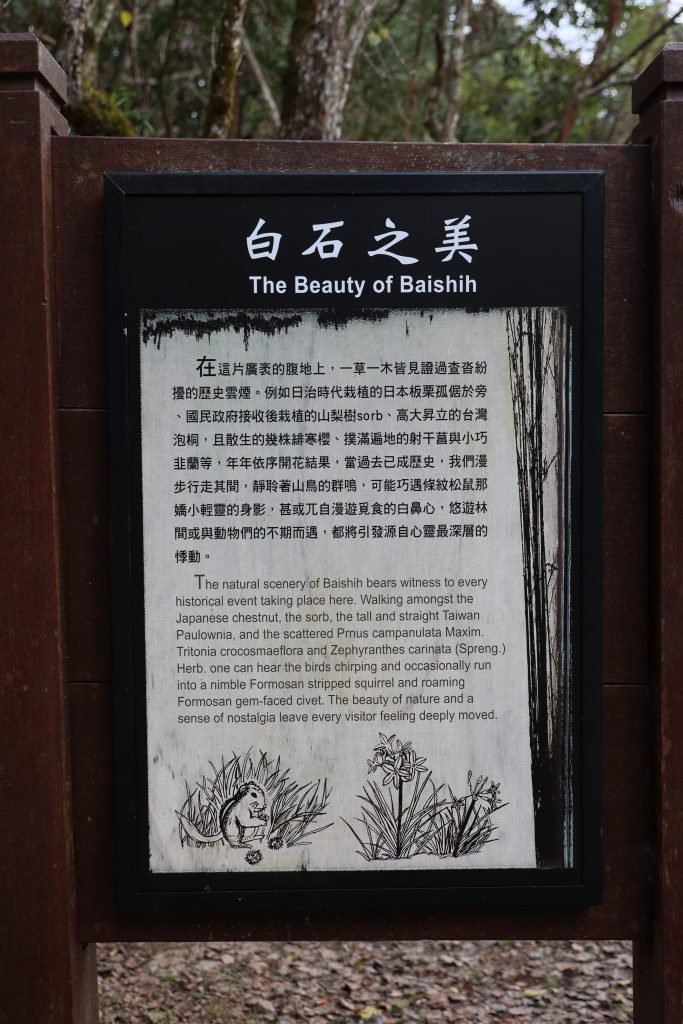 14:10 白石駐在所_步道12K處 (宿) , 水源約於11K 處, 來回約 30 分鐘 , 這邊有政府委外管理員進行管理與整理環境,有兩間乾式生態廁所,這樣周圍就不會有小白花,所有山協服務都退出到後面兩個駐在所了