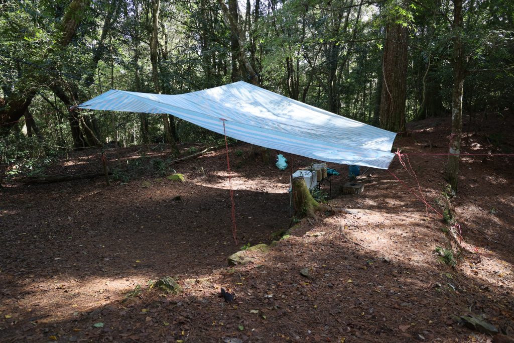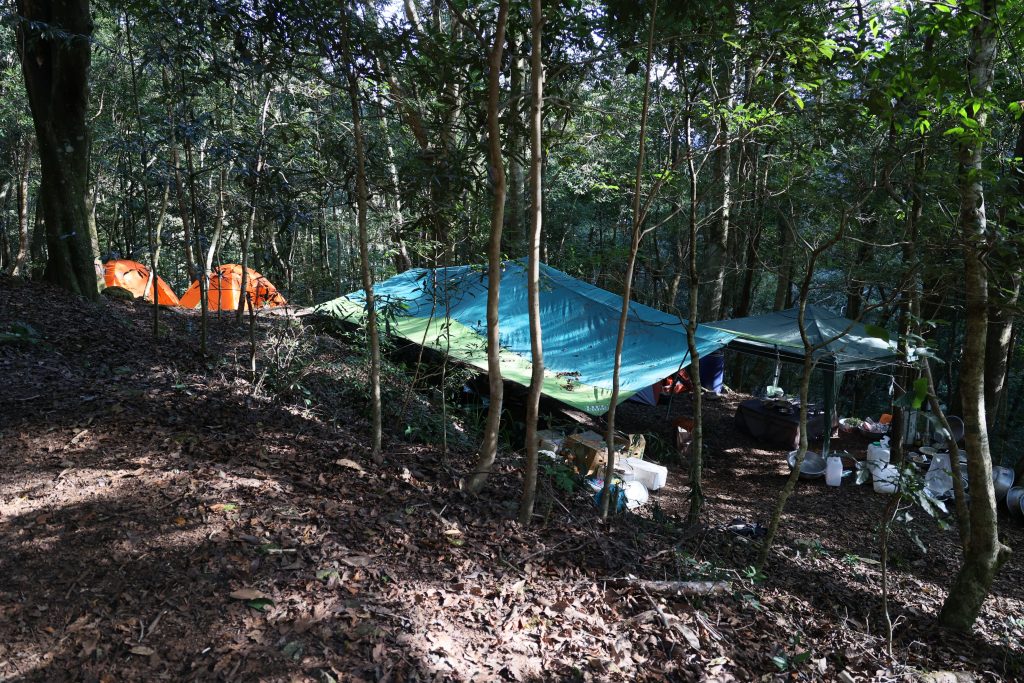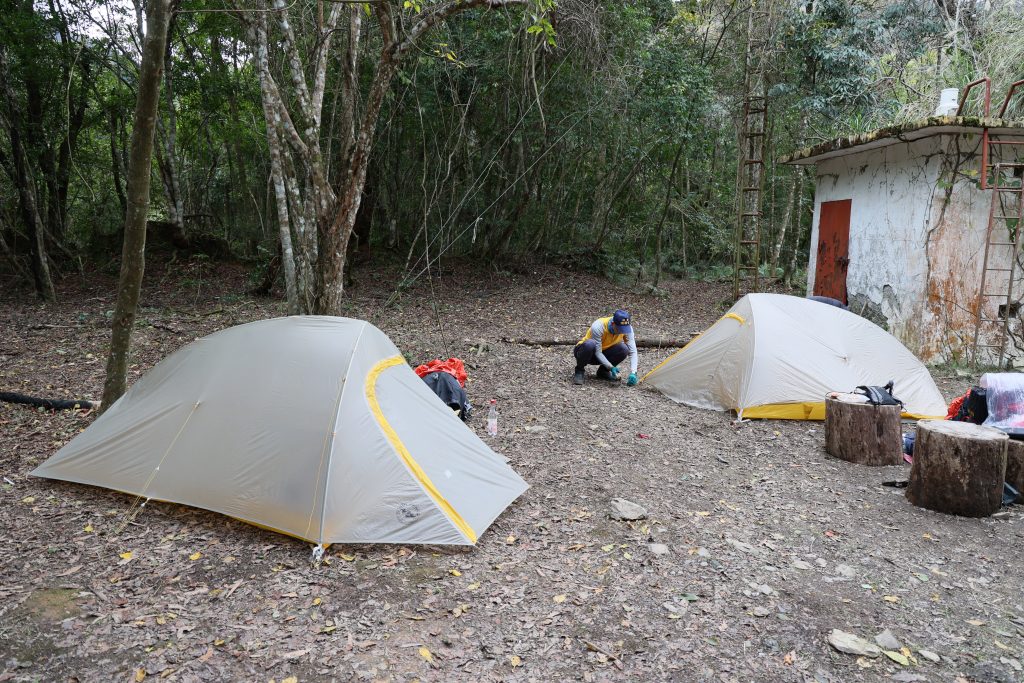 霞喀羅古道沿途有諸多平坦腹地,其中白石駐在所是其中最寬闊且剛好在整段古道中間的紮營點,可依行程自主安排;飲水部分本次於白石吊橋前溪溝取水 ( 過白石駐在所往石鹿方向也有活水可供補給)。