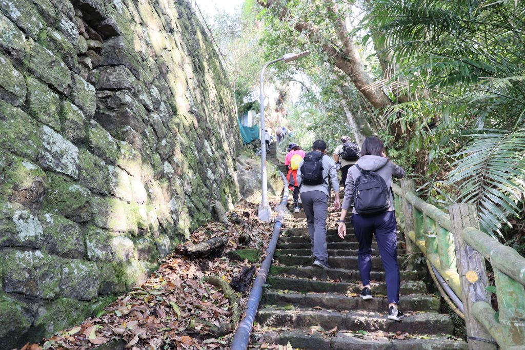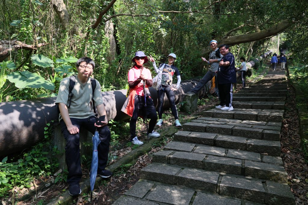 天母水管路古道 天母-陽明山: 今天來的同事很多,碰到同事朋友走不太動於是分成兩團,在後方陪其慢慢推進,好不容易終於在古道出口讓兩隊會合,之後又有人提議加碼紗帽山,於是又拆分兩隊。