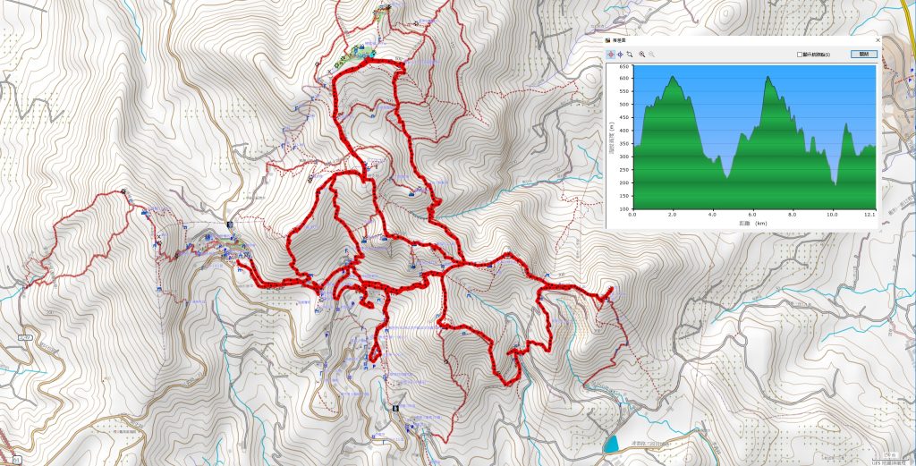 同事約爬觀音山,特別提早1.5小時加碼一趟後再與同事會合,完成2P 後再加碼尖山步道,走一圈約7小時蠻累的,里程才 12Km,總爬升約 1037m