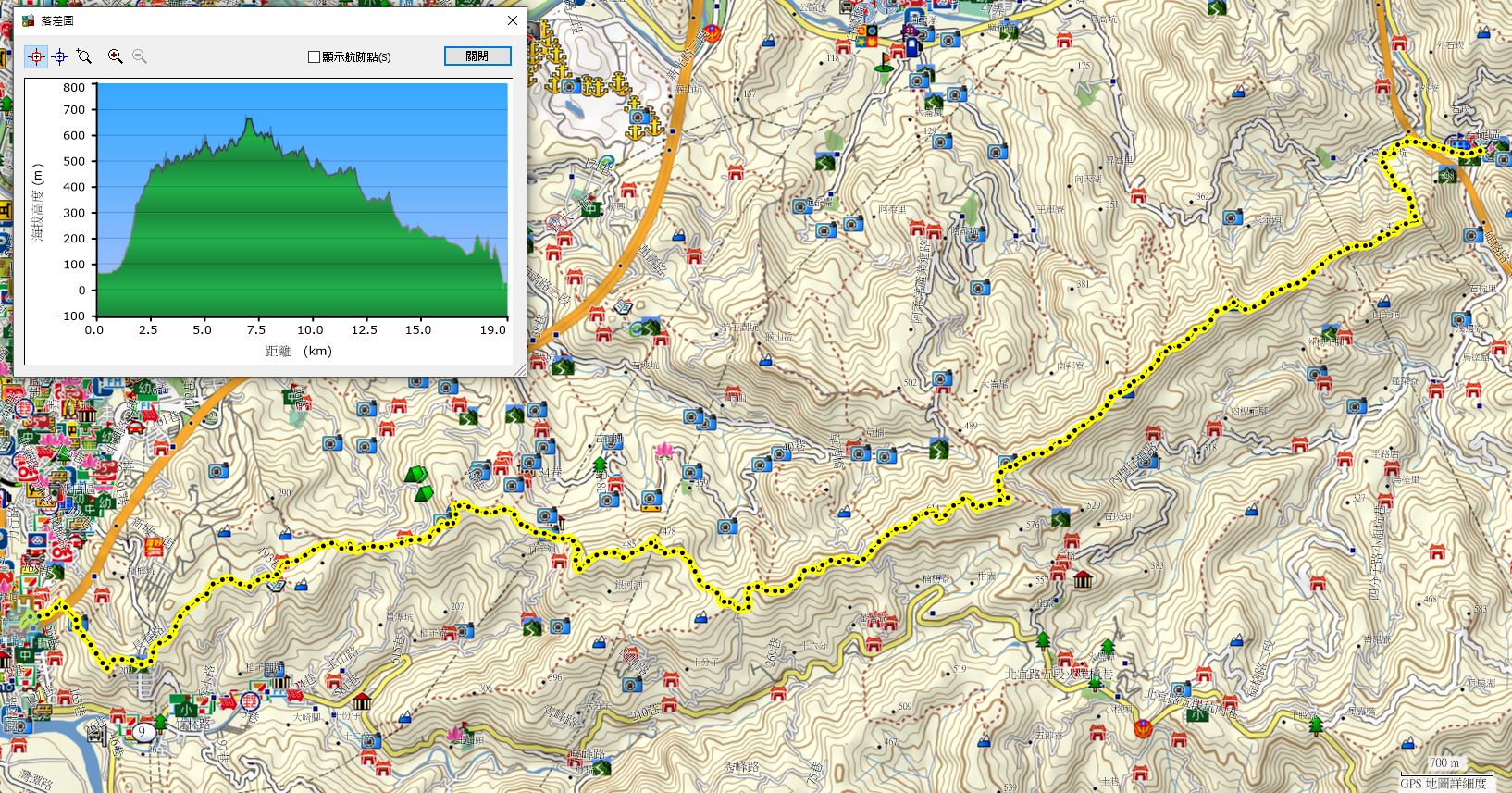 全長19KM,總爬升 915M,想想這走法真是厲害,今天走的所有山頭我都曾經走過,之前社團活動是分4次開團阿,分別是筆架連峰、二格山O型、貓空大縱走、新店小獅山,沒想到能合在一起大縱走~
