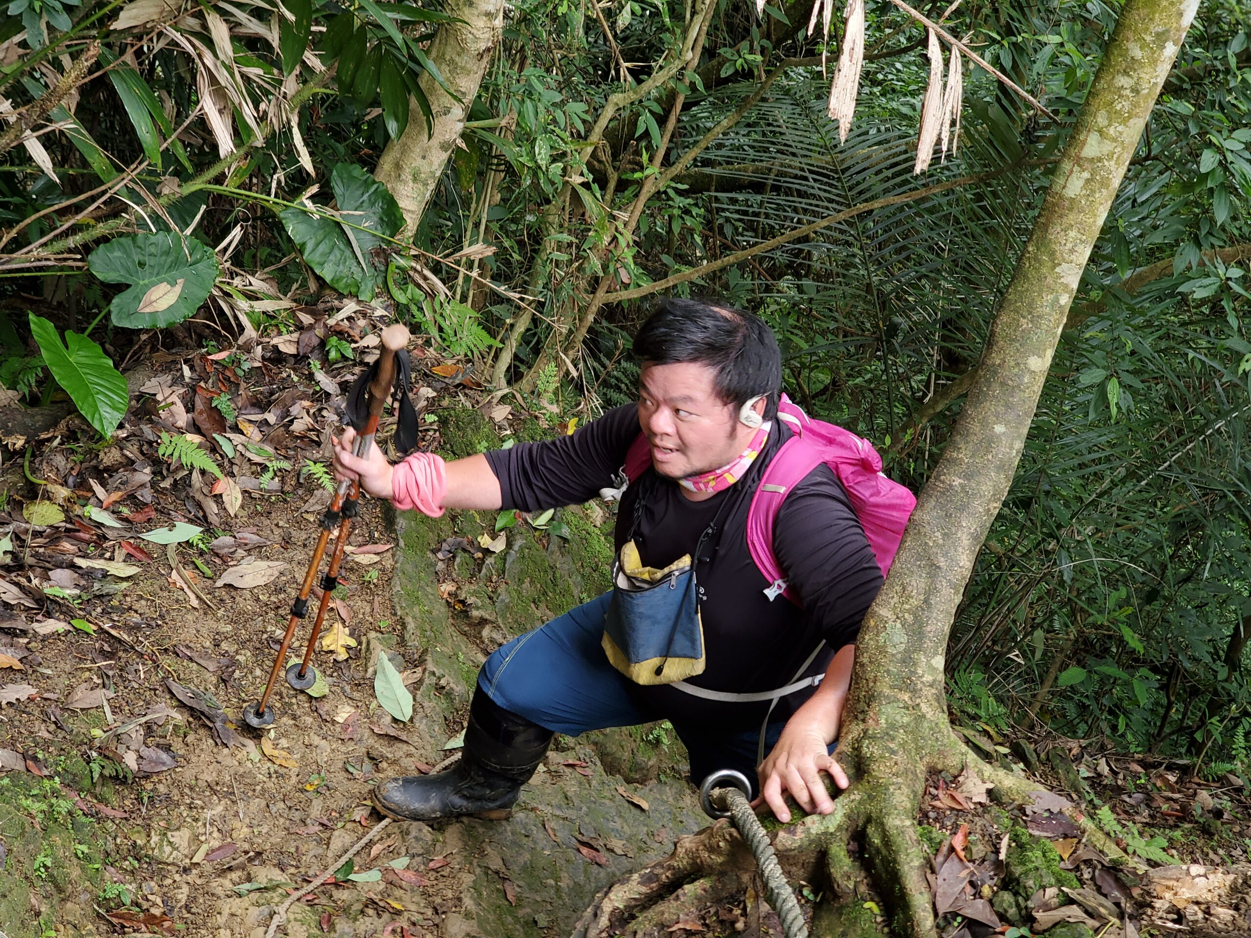 登山口起登,走一小段山徑可以通到最後農家,真佩服住在這沒有馬路的住戶,每天都要爬山才能到馬路,之後就是陡上稜線,上稜線前非常悶熱,我因為有做跑步訓練所以狀況不錯,在前面輕鬆領路把同事操個半死,上稜線後我就被換下改在後方押隊了XD