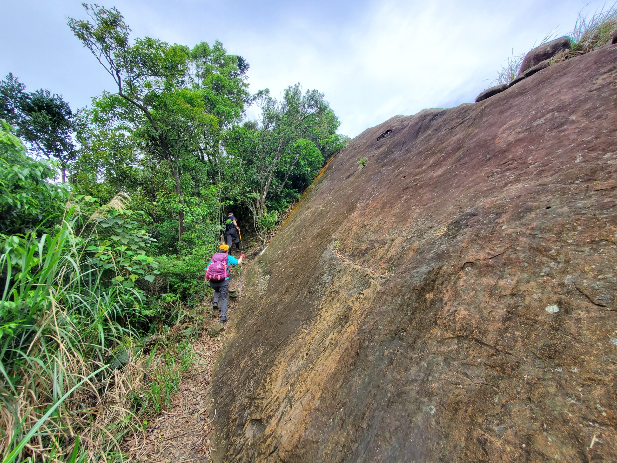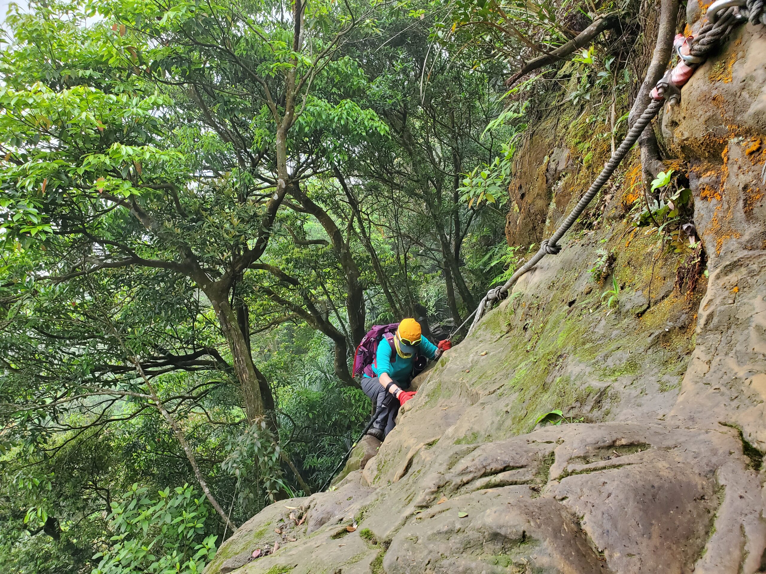 經過西帽子岩、炙子頭山、筆架山北峰與南峰完成筆架連峰,筆架連峰是北部三大岩場皇帝殿、筆架連峰、五寮尖之一,上一次來這是參加登山社時第二次活動,當時菜菜的是穿牛仔褲XD,一路走過來邊回憶當時情境讓人覺得歲月催人老阿~