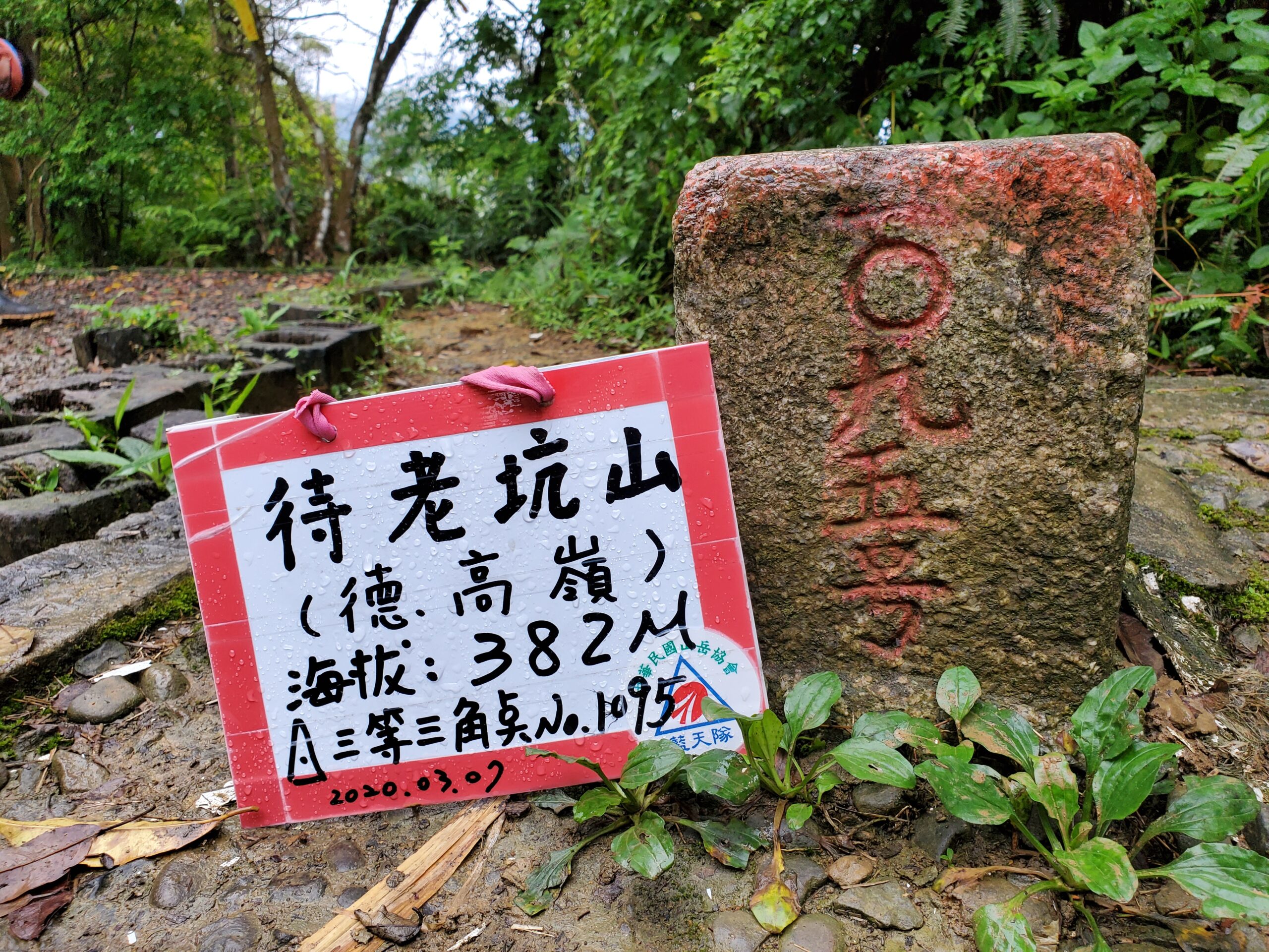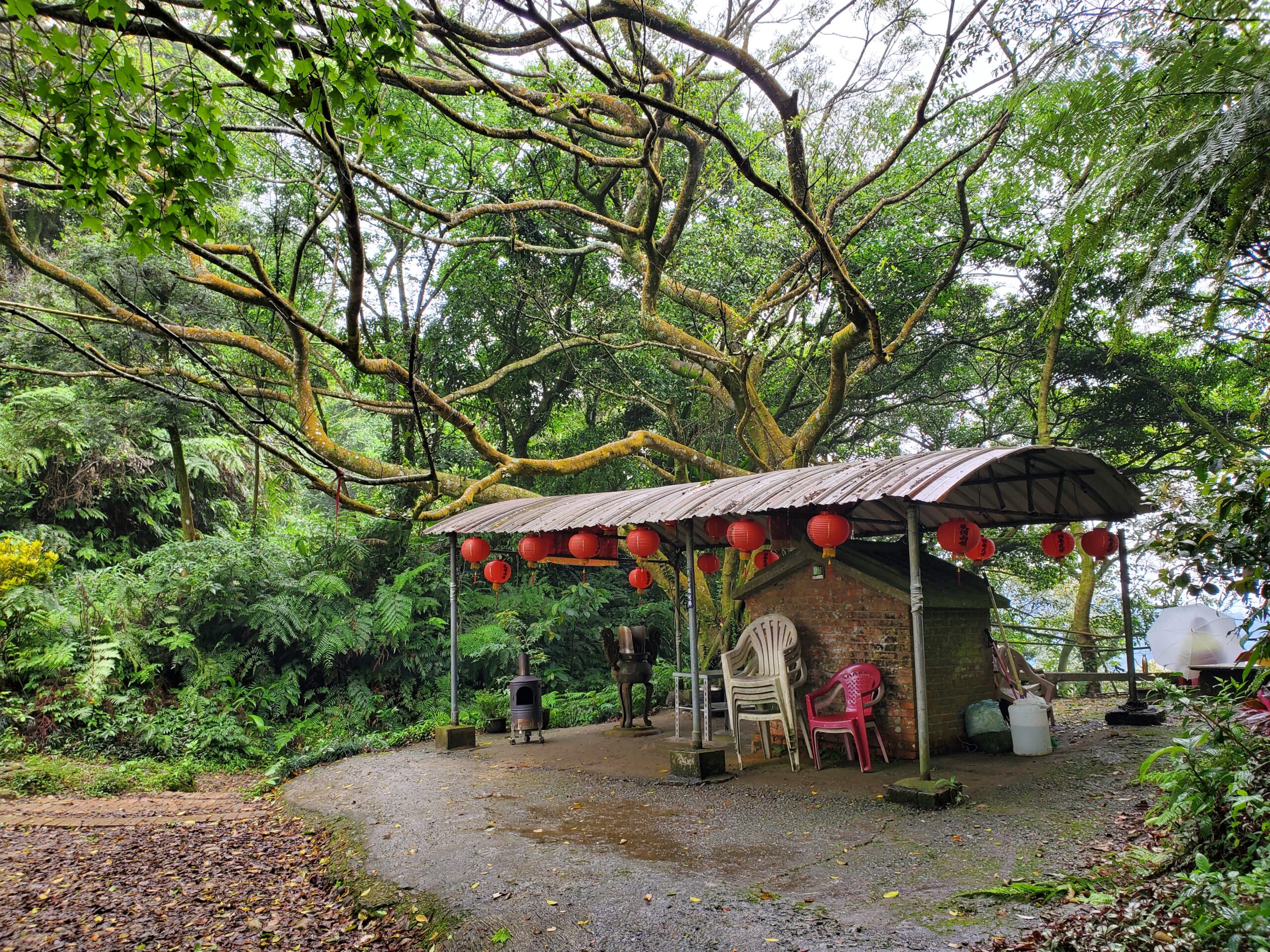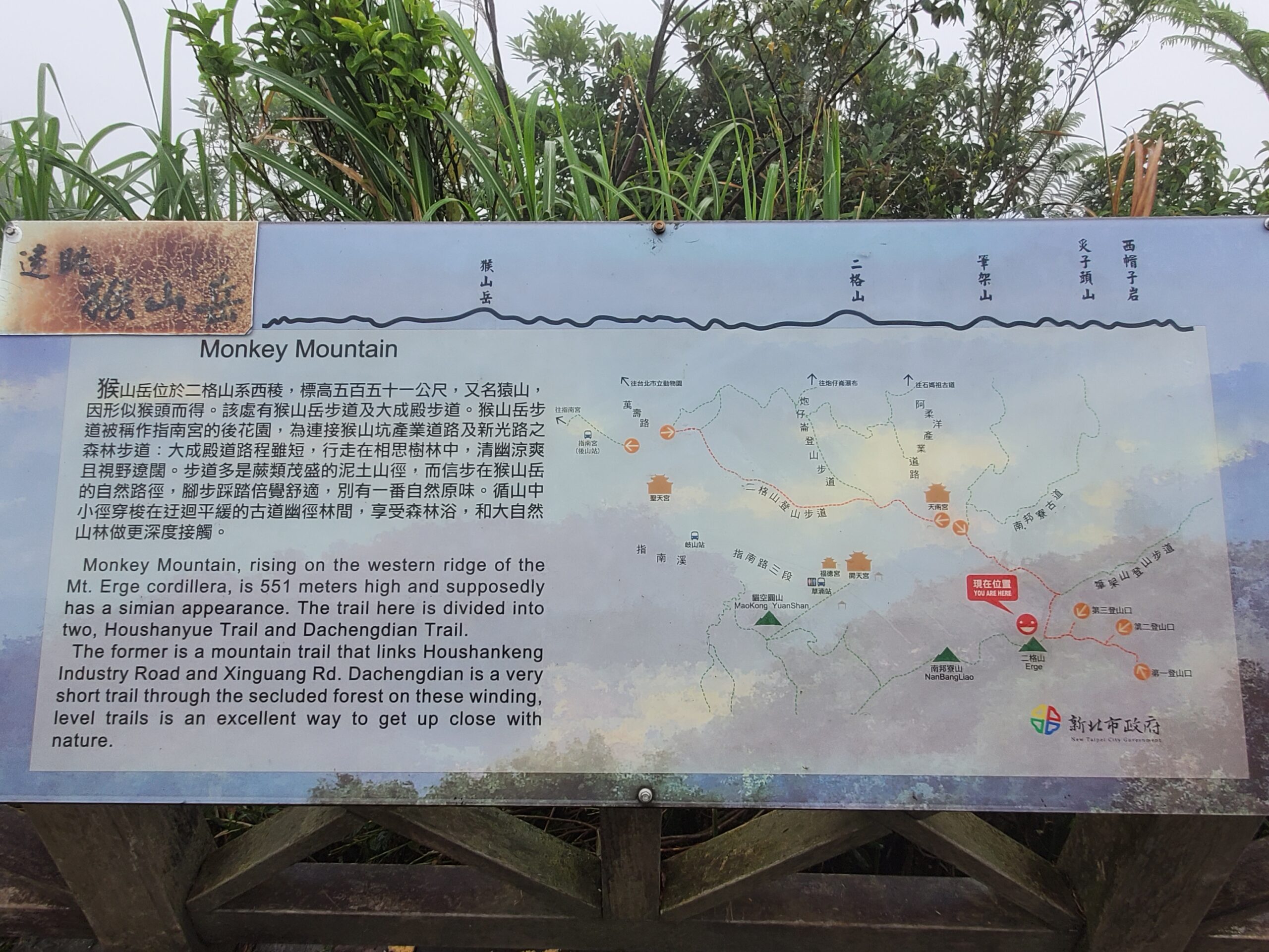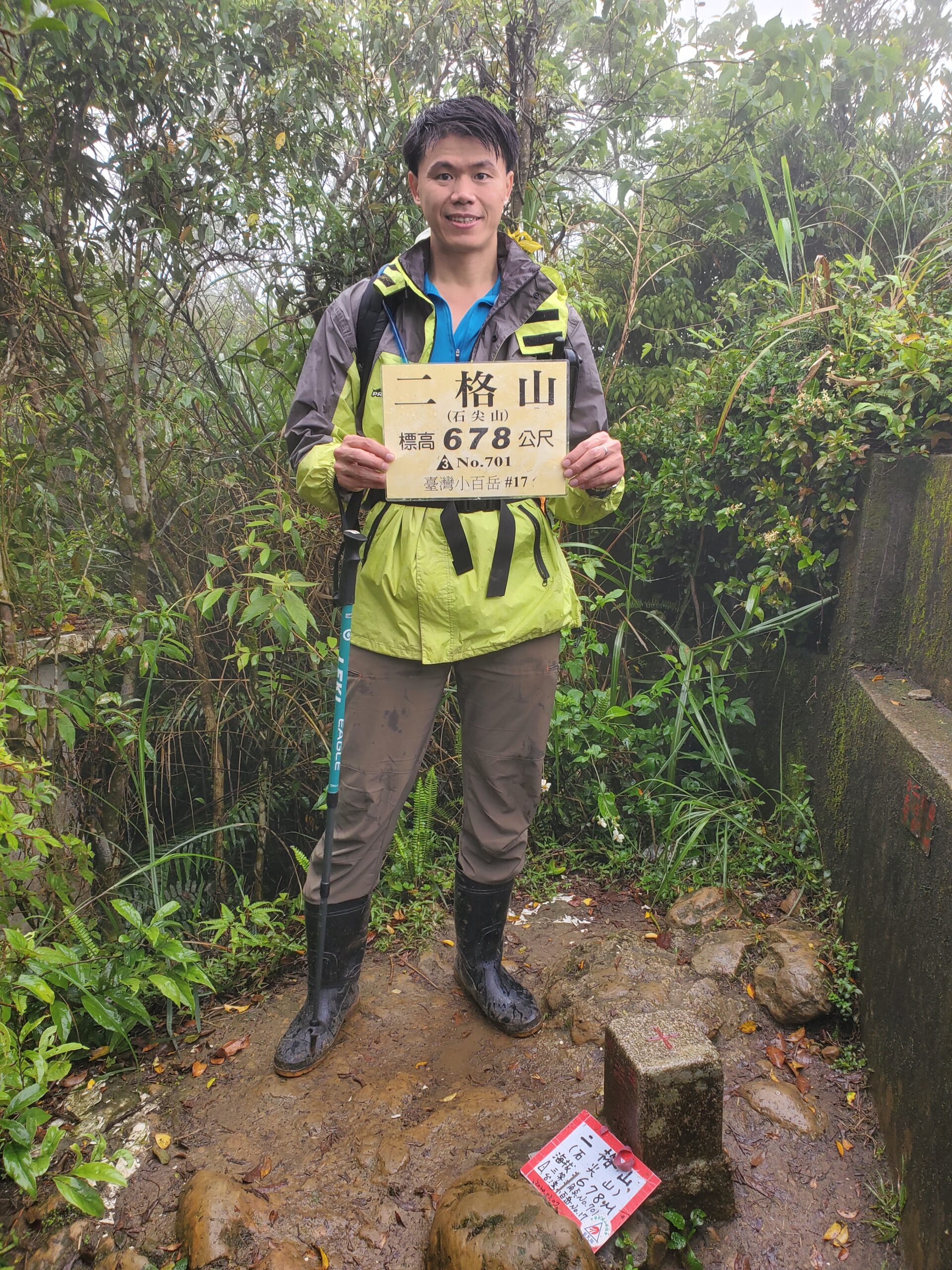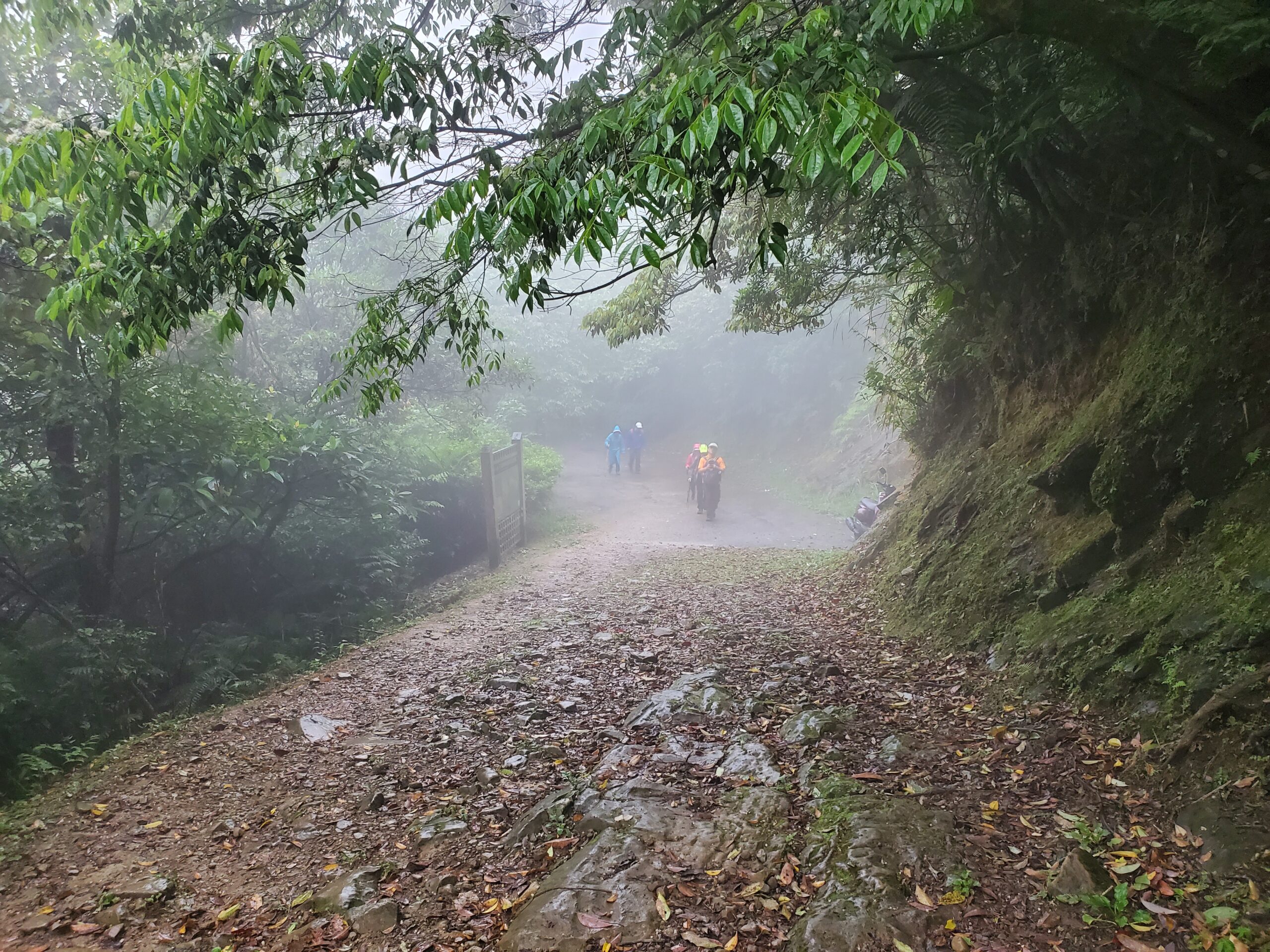 在綠豆攤鞍部進行午餐行動糧後,開始下雨了,好不容易走一半了不能輕易撤退,穿上雨衣後開始攻上二格山,也是此行唯一小百岳,接下來進入貓空稜線,走到貓空後同事小六決定在貓空撤退,於是後半段剩3人到新店
